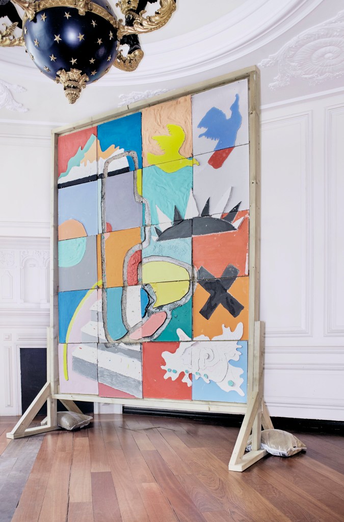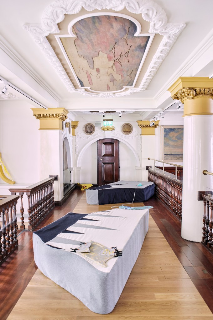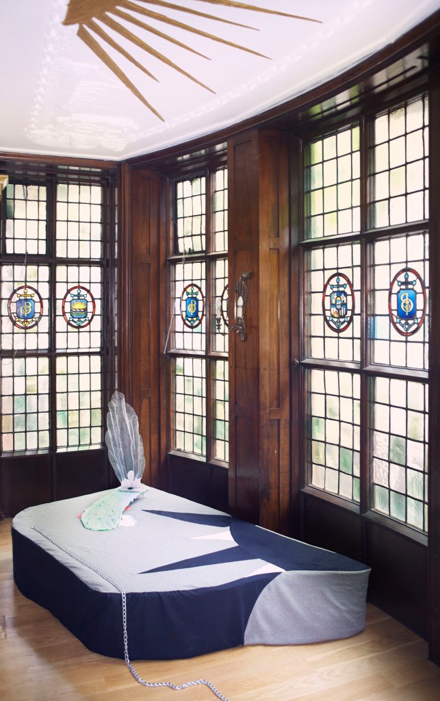 acrylic paint, aluminium box section, bamboo stick, black grid mesh display, casting plaster, cement, clear casting resin, cotton, cotton wadding, dyed cotton webbing, expanding foam, felted wool, foam rod, foam sheet, found timber, glass mat fabric, green chalkboard paint, green jute rope, grey clay, industry marker, insulating tape, jesmonite, MDF boards, nylon strap, oil stick, pine wood, plasticine, red steel hook, sharp sand, spring clamps, steel signalling chain, thermoplastic, tracing paper, wool, 12mm single thread woodscrews;
