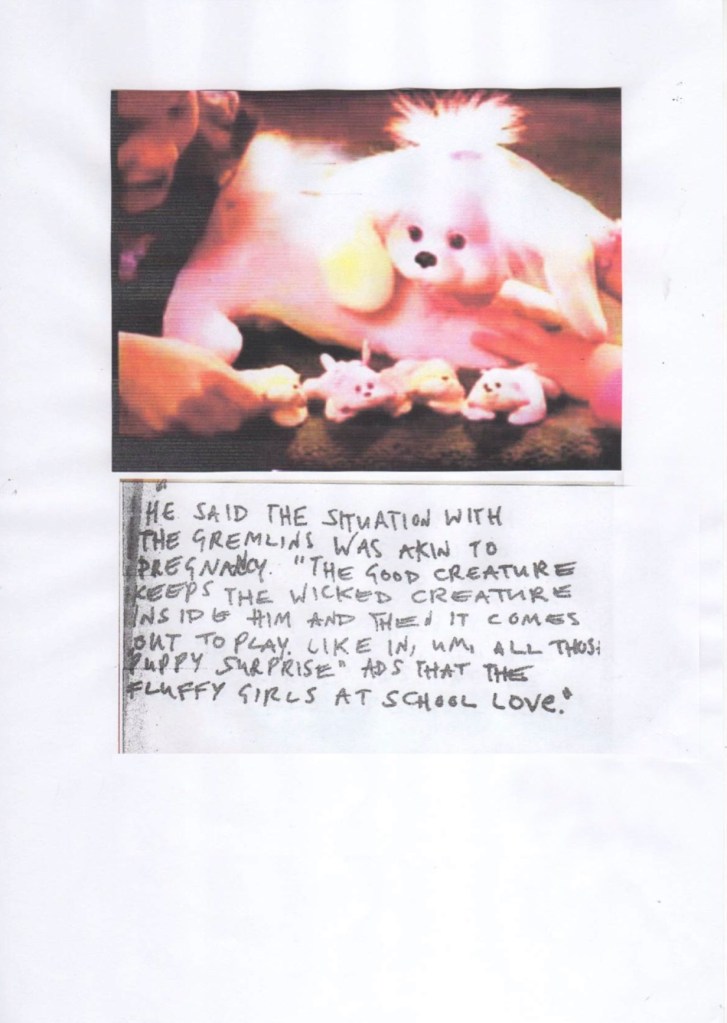 installation view. Goddess (2016-2019) by Zoe Williams; Flatbone (2017) by Holly Hendry installation view. Goddess (2016-2019) by Zoe Williamsinstallation view. Thanks a million (2019) by Guendalina Cerruti; Keep Coffin (2019) by Holly Hendry; Trees on snow, table (2019) by Guendalina Cerrutiinstallation view. Couple (2016-2019) by Zoe Williams; Thanks a million (2019), White van, table (2019), and Trees on snow, table (2019) by Guendalina Cerruti; My Gremlin Did Some Wicked Things (2019) by Charlie Fox installation view. Couple (2016-2019) by Zoe Williamsinstallation view. Thanks a million (2019) by Guendalina Cerruti installation view. Trees on snow, table (2019), and White van, table (2019) by Guendalina Cerrutidetail. Trees on snow, table (2019) by Guendalina Cerruti detail. White van, table (2019) by Guendalina Cerruti installation view. My Gremlin Did Some Wicked Things (2019) by Charlie Foxpage from Psychiatric Notes for Pubescent Male With “Gremlins” Related Psychosis / 1990 –, part of My Gremlin Did Some Wicked Things (2019) by Charlie Foxpage from Psychiatric Notes for Pubescent Male With “Gremlins” Related Psychosis / 1990 –, part of My Gremlin Did Some Wicked Things (2019) by Charlie Foxpage from Psychiatric Notes for Pubescent Male With “Gremlins” Related Psychosis / 1990 –, part of My Gremlin Did Some Wicked Things (2019) by Charlie Foxpage from Psychiatric Notes for Pubescent Male With “Gremlins” Related Psychosis / 1990 –, part of My Gremlin Did Some Wicked Things (2019) by Charlie Foxinstallation view. White van, table (2019), and Trees on snow, table (2019) by Guendalina Cerruti; Chamber Aide on yellow (2016-2019) by Zoe Williams; Thanks a million (2019) by Guendalina Cerruti; Keep Coffin (2019) by Holly Hendry installation view. Chamber Aide on yellow (2016-2019) by Zoe Williamsinstallation view. Keep Coffin (2019) by Holly Hendryinstallation view. Flatbone (2017) by Holly Hendry